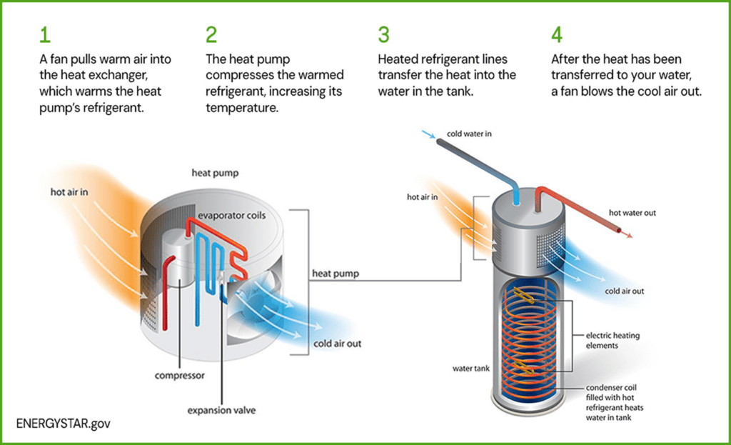 They’re kind of like your refrigerator, except running in reverse. Instead of fighting the cold by heating water, they pull warmth from the air around them and transfer it into your water tank.