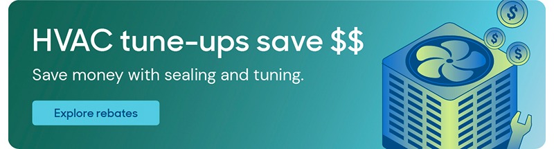 Up to 30% of conditioned air — heated or cooled — can be lost through leaky ducts. If you’re investing in a high efficiency system, and you want to maximize its efficiency, you’ll want to make sure that your ducts are in good shape. And guess what? There’s a rebate for that, too.